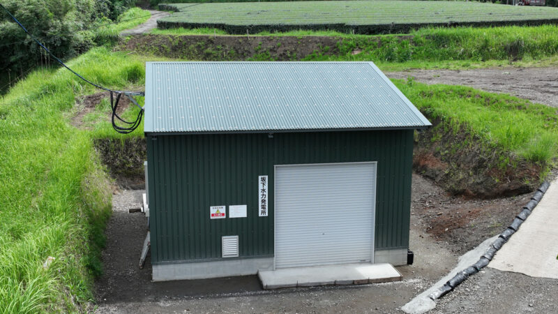福地産業では川や水路の水の一部を水路に取り込み発電機を回す水路式発電所を開発しています。